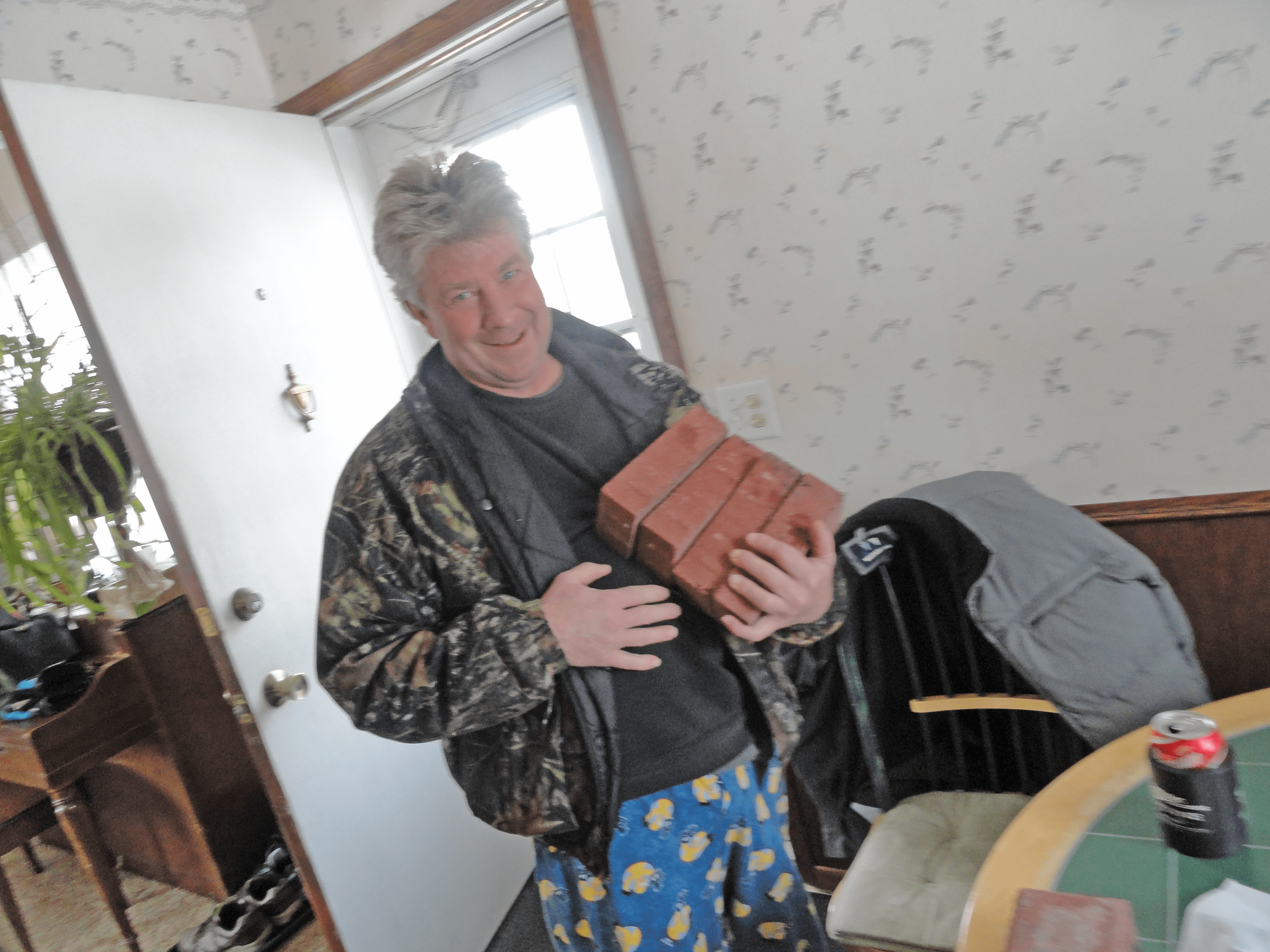 Who has bricks laying around? This man, that’s who.