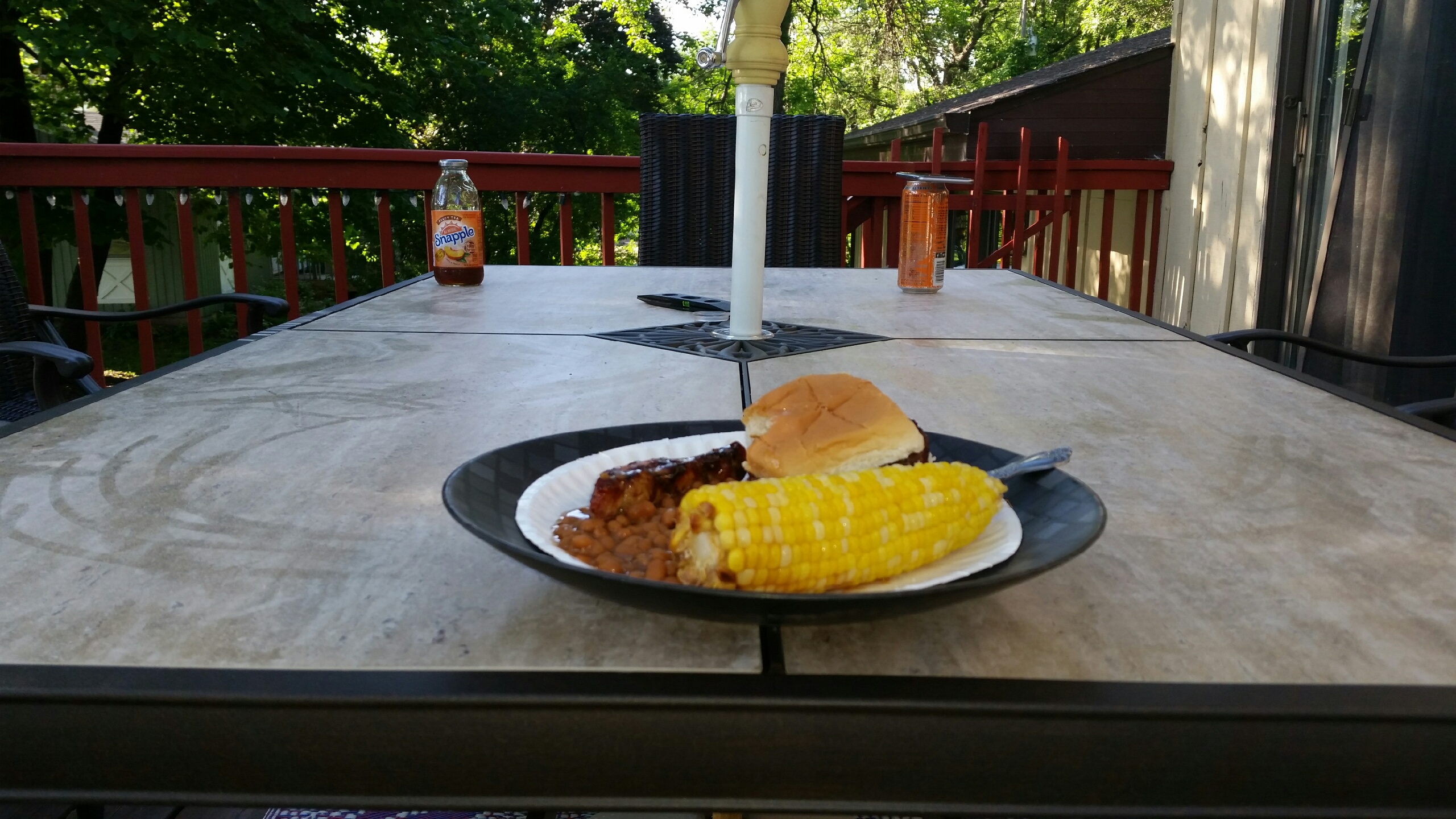 This is my new favorite spot at the house. We’ve enjoyed plenty of dinners and even a few breakfasts out here. I think it was Father’s Day that we put it together. We definitely needed to upgrade our gathering place for meals. We were using the old patio set and it was way too small. We’ve since brought that one down to the walkout area with the grill. So now we have an upstairs and a downstairs dining area!