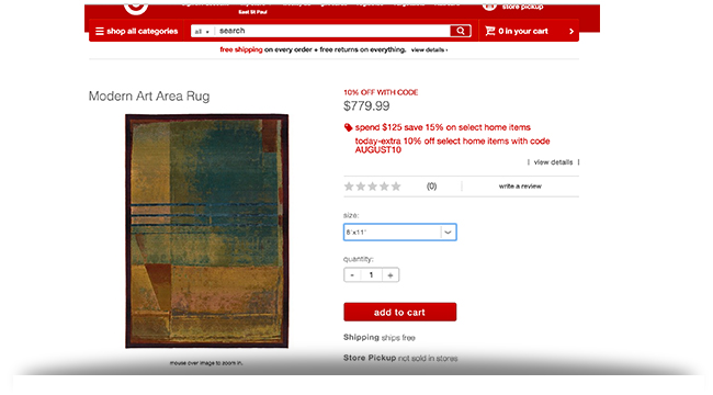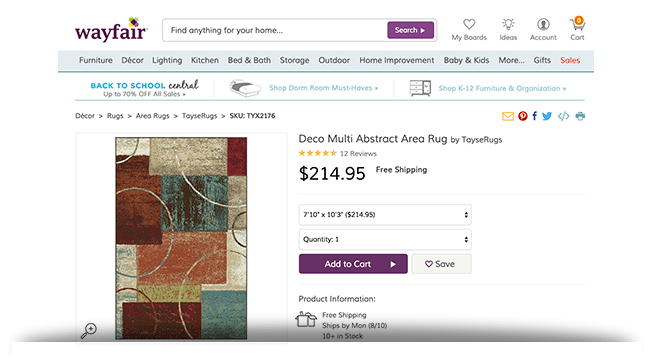 Wayfair had it going on for me. It had the best selection, and by far the best prices. Plus, I had a 10% off code that came in the mail that very week. But this one was pretty boring. I was lost at sea in thousands of rugs. All starting to look the same.